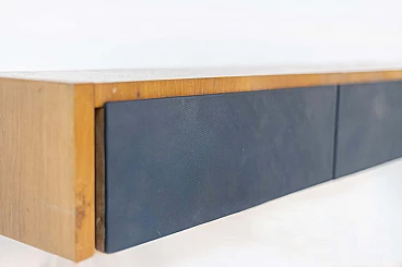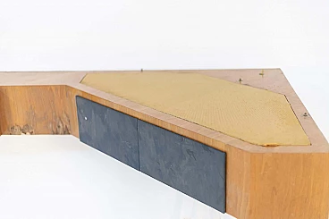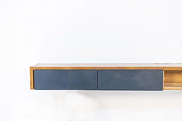 Consolle da parete attribuita a Melchiorre Bega in noce e tessuto blu, anni '50