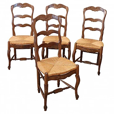 Bellissima serie di quattro sedie antiche provenzali in legno di faggio massello databili intorno ai primi decenni del Novecento. Deliziosa linea mossa con comodo schienale alto e seduta rustica in paglia. Le sedie presentano anche piccola decorazione ad intaglio nel legno. Ottime condizioni generali sia lignee che nella seduta in paglia. Vi consigliamo comunque di guardare bene in dettaglio tutte le foto allegate. Proposta ad un'ottimo prezzo trattabile vi invitiamo ad inviarci le vostre proposte di acquisto le valuteremo con piacere. Altezza seduta 46. Imballo professionale spedizioni assicurate con corrieri consegna su appuntamento solo piano strada no facchinaggio ai piani.