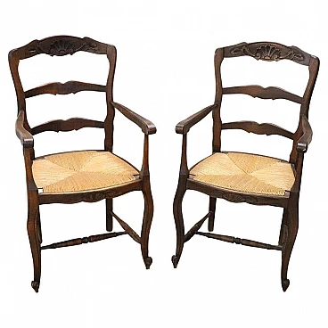 Bellissima coppia di seggioloni antichi provenzali in legno di faggio massello databili intorno ai primi decenni del Novecento. Deliziosa linea mossa con comodo schienale alto e seduta rustica in paglia. Presentano anche piccola decorazione ad intaglio nel legno. Ideali come utilizzo a capotavola. Ottime condizioni generali sia lignee che nella seduta in paglia. Vi consigliamo comunque di guardare bene in dettaglio tutte le foto allegate. Proposta ad un'ottimo prezzo trattabile vi invitiamo ad inviarci le vostre proposte di acquisto le valuteremo con piacere. Imballo professionale spedizioni assicurate con corrieri consegna su appuntamento solo piano strada no facchinaggio ai piani.