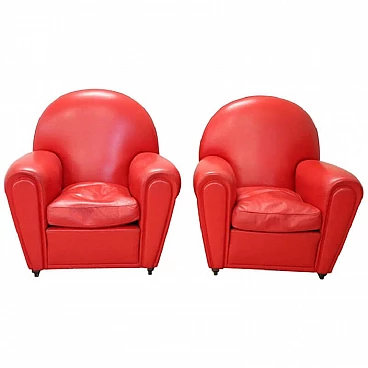 Coppia di Poltrone Frau in Pelle rossa, riprodotta come le prime degli anni '30, edizione numerata