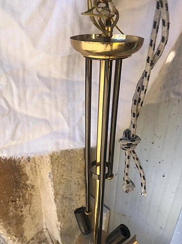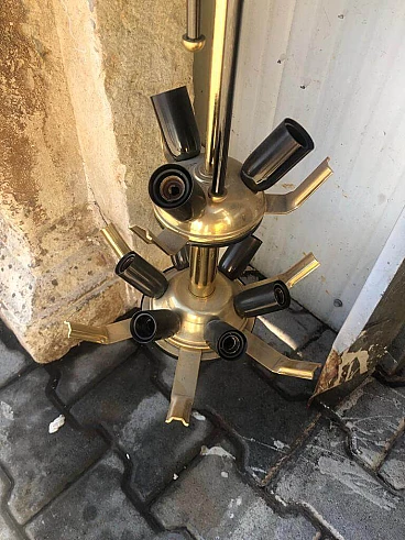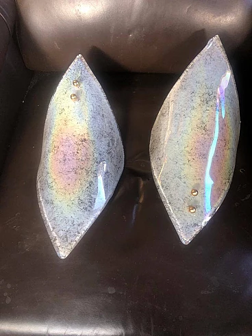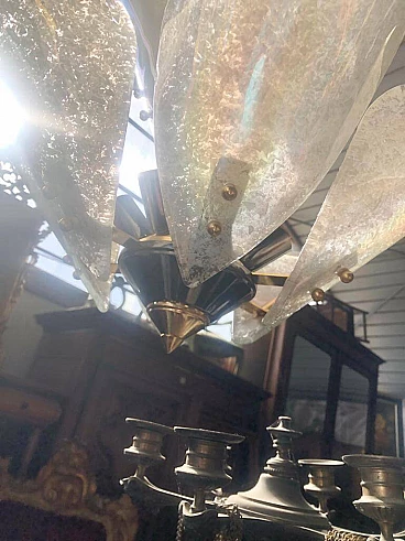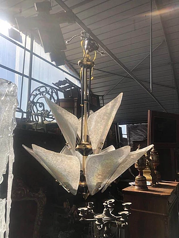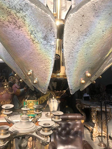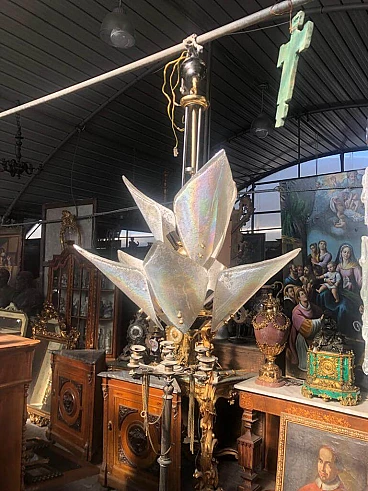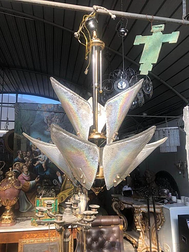 Lampadario in vetro di Murano lattimo iridescente e metallo dipinto di Gaetano Sciolari, anni '80