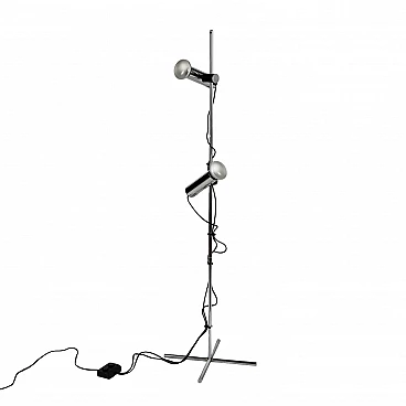 Lampada da terra Targetti in metallo e alluminio cromato, anni '80, con punti luce a posizione regolabile mediante scorrimento sullo stelo e ad inclinazione regolabile.