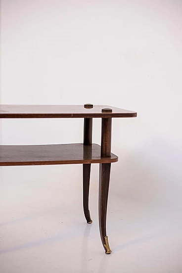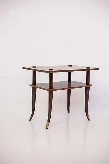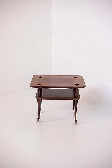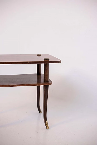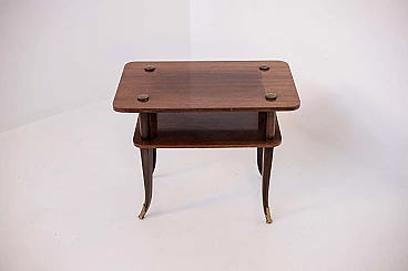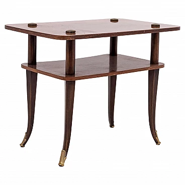 Tavolino in legno e ottone a due ripiani, anni '50