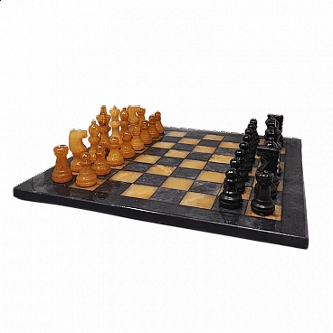Scacchiera nera e marrone in alabastro di Volterra, anni '70