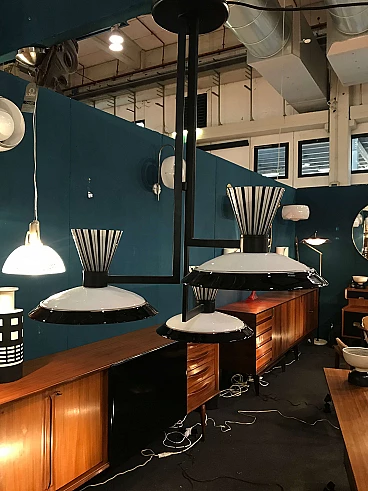 Lampadario in metallo e vetro di Murano, bianco e nero, anni '70