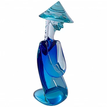 Scultura di uomo cinese in vetro di Murano blu di Archimede Seguso, anni '60