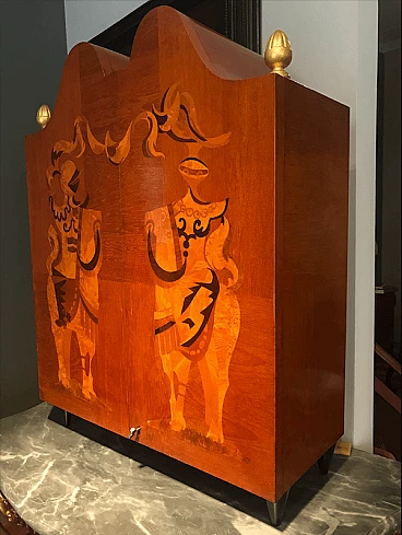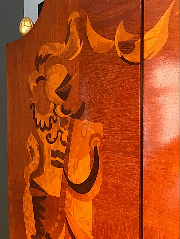 Mobile bar intarsiato e illuminato internamente, anni '50
