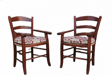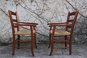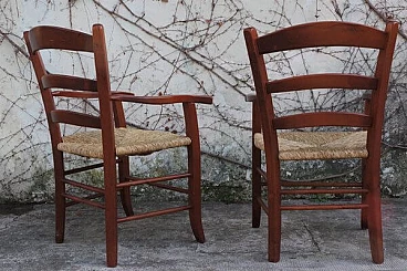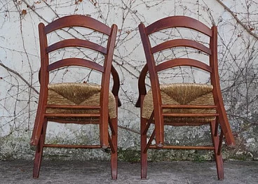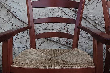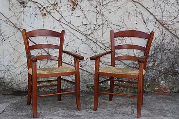 Coppia di sedie in legno con seduta in paglia, anni '90