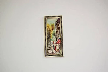 Acquerello con veduta cittadina in cornice dorata, anni '70
