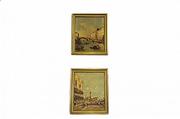 Paesaggio di Venezia, coppia di dipinti su tela, anni '60