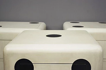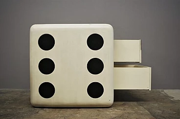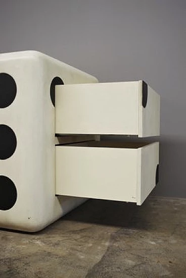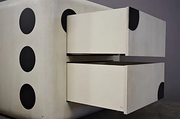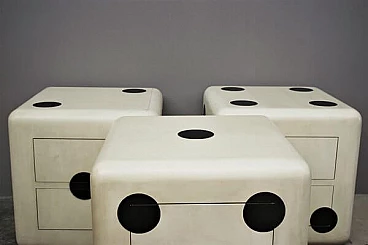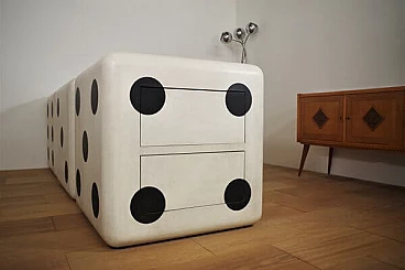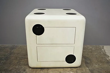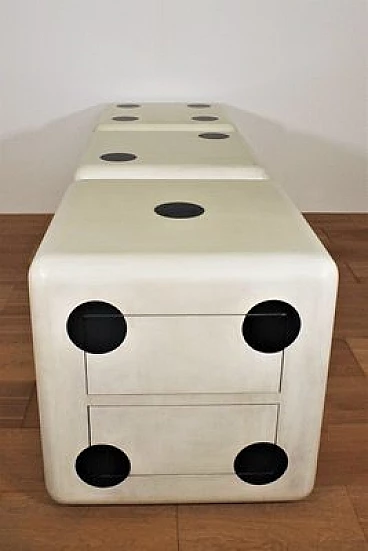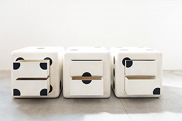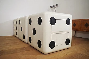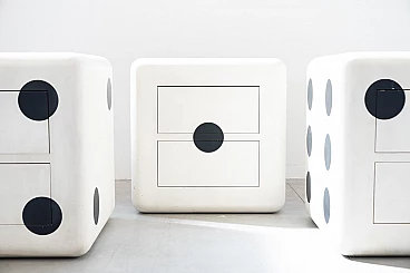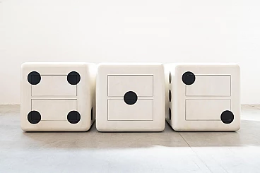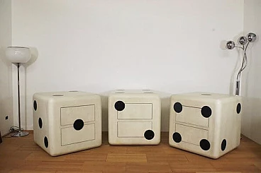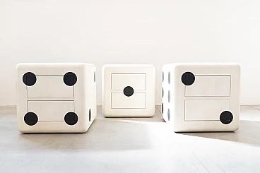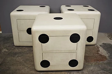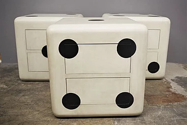 3 Cubi a dado con rotelle e due cassetti, anni '80