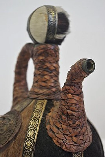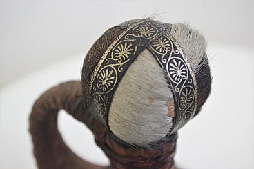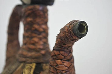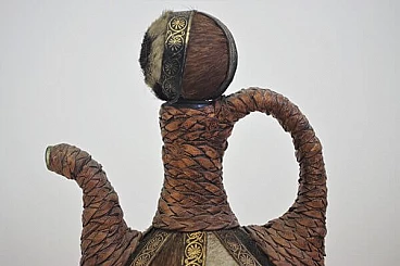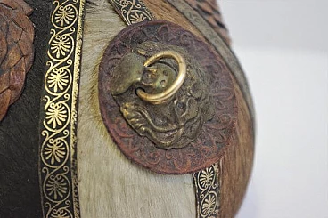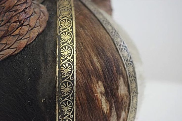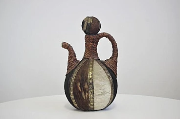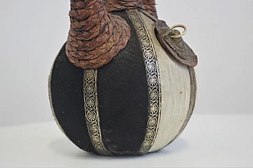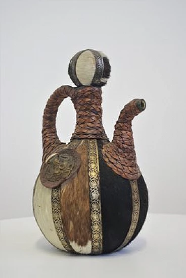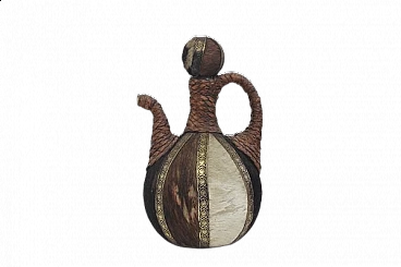 Brocca di vetro ricoperta di corda, cuoio e pelo di mucca, anni '50
