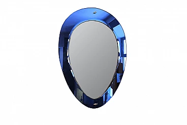 Specchio blu in vetro anni '50, con losanghine decorative in ottone e cornice di vetro blu molata. Vetro dello specchio lievemente segnato nella parte sotto la cornice. #superaffare