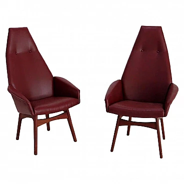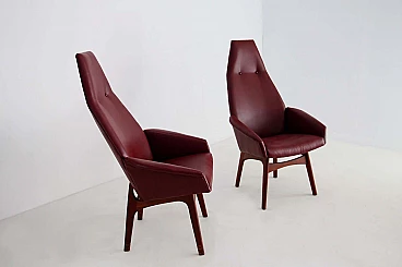 Coppia di poltrone di Adrian Pearsall modello Capitan in pelle, anni '50
