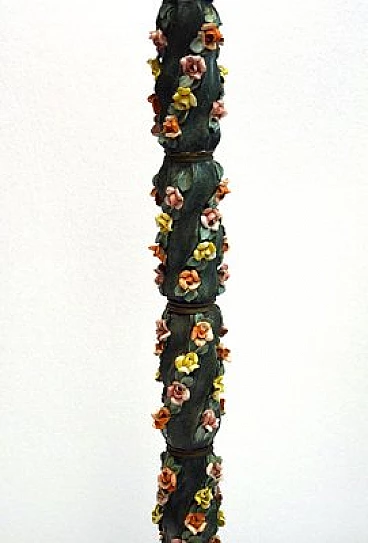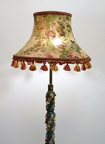 Lampada da terra in ceramica con decori floreali, anni '50