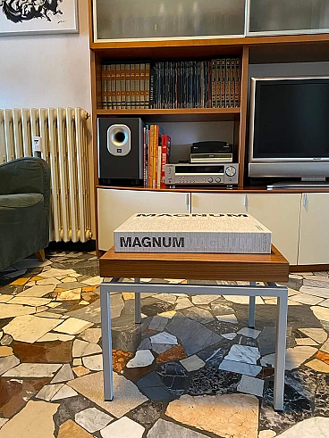 Tavolino Bauhaus in teak e alluminio satinato, anni '50