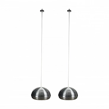 Coppia di lampade Splügen Bräu di Achille & Pier Giacomo Castiglioni per Flos, anni '60. Coppia di lampade a soffitto, alluminio cromato.
