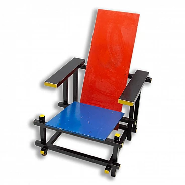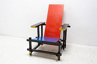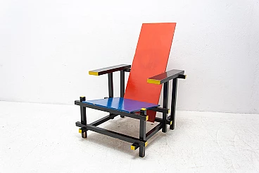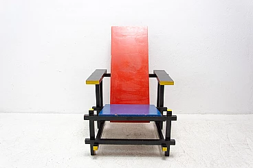 Sedia Rossa e Blu di Gerrit Rietveld in legno laccato, anni '70
