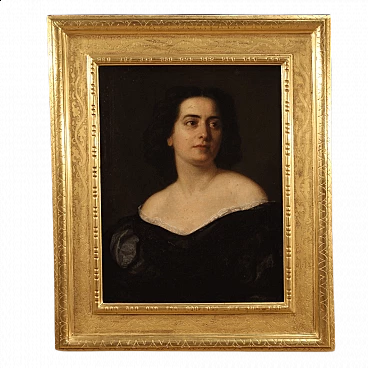 Antico dipinto tedesco della seconda metà del XIX secolo. Opera olio su tela, in prima tela, raffigurante ritratto di giovane donna in elegante abito da sera di ottima mano pittorica. Cornice in legno e gesso del XX secolo finemente scolpita, dorata e cesellata di favolosa decorazione. Quadro di bella misura e piacevole arredamento per antiquari, arredatori e collezionisti di ritratti del XIX secolo. Presenta una firma di difficile lettura in alto a destra (vedi foto) e una targhetta sul retro della cornice con la scritta Hans Feuerbach (1829-1880) riferibile al pittore tedesco Anselm Feuerbach, mancante di autentica. Dipinto di eccellente qualità rifinito nei minimi dettagli, di grande intensità pittorica. Ha subito un piccolo intervento di ripresa del colore in alcuni punti (vedi foto). In bella patina, nel complesso in buono stato conservativo. Luce dipinto H 63,5 x L 49 cm.