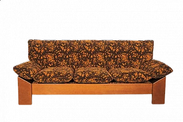 Divano stile arredamento Mobil Girgi, struttura in legno e tessuto a fiori colorati, anni '70