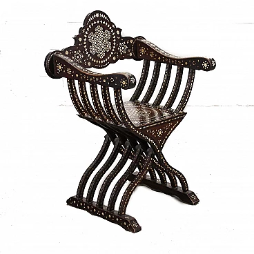 Sedia Savonarola intarsiata attribuita ad Adriano Brambilla, '800