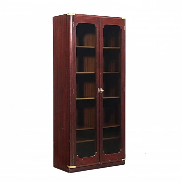 Mobile vetrina ad ante battenti. Legno impiallacciato di palissandro, angolari in ottone.