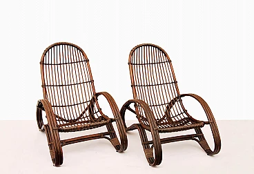 Coppia di poltrone in rattan e canna d' India, anni '70