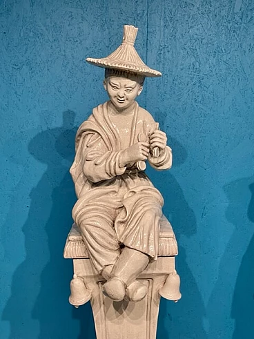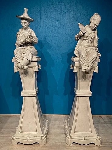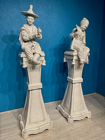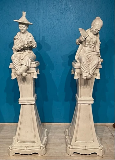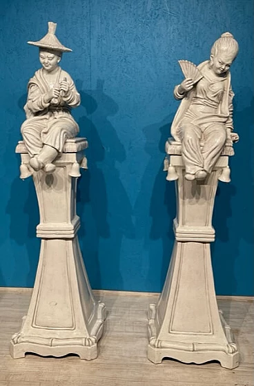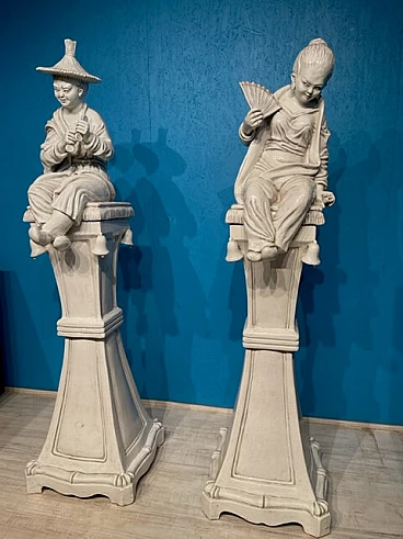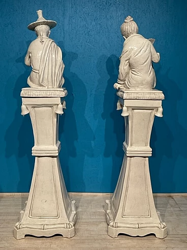 Coppia di grandi sculture in terracotta invetriata bianca, del '900