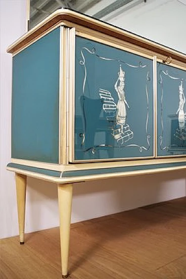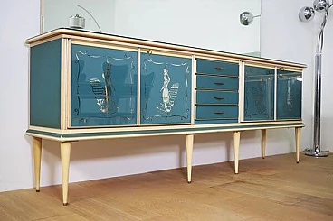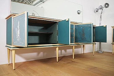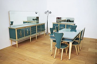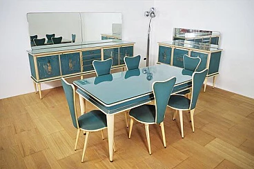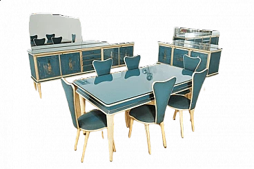 Sala da pranzo di Umberto Mascagni in legno e pelle, anni '50
