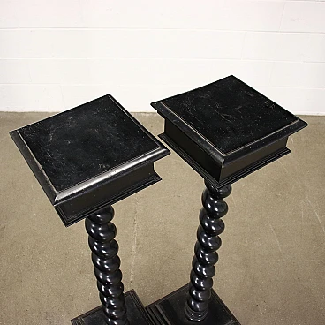 Coppia di colonne portavaso in legno ebanizzato, fine '800