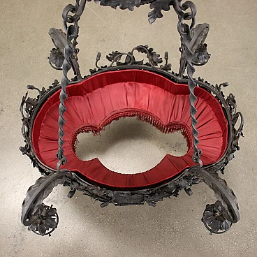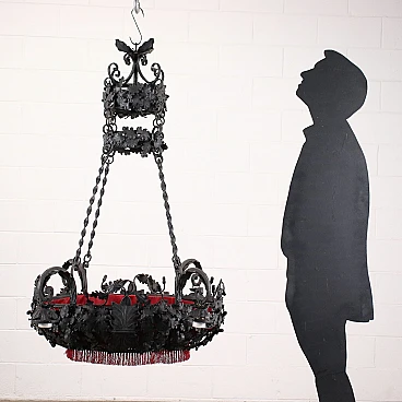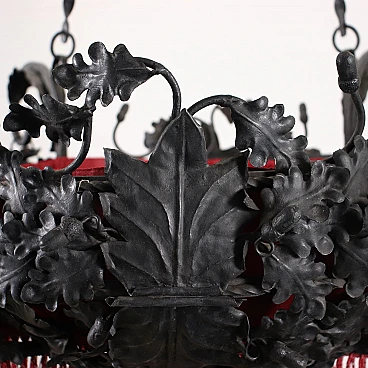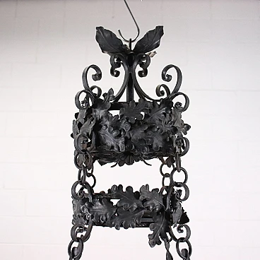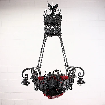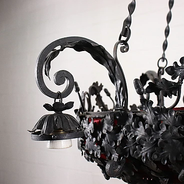 Lampadario Liberty in metallo con motivi floreali, inizio '900