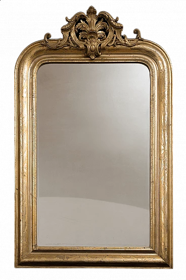 Specchiera in stile Napoleone III in legno dorato, del '800