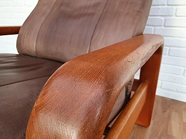 Poltrona regolabile danese, HS Design, pelle e teak, anni '80