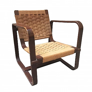 Poltrona Bocconi, in legno e vimini, di Giuseppe Pagano Pogatschnig & Gino Maggioni, anni '40