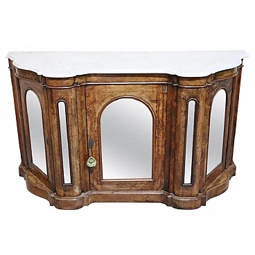 Credenza antica in radica, intarsi e piano in marmo, sec XIX