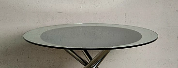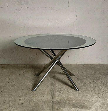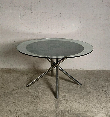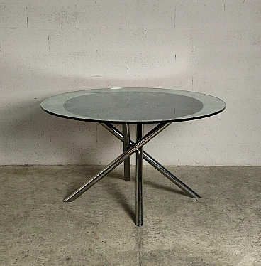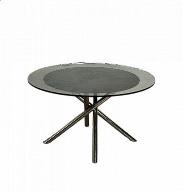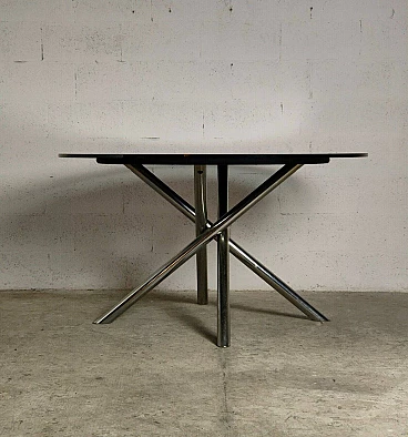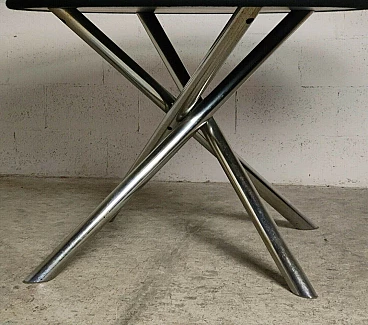 Tavolo rotondo Nodo in acciaio tubolare, legno e tessuto con piano in vetro di Carlo Bartoli per Tisettanta, anni '70