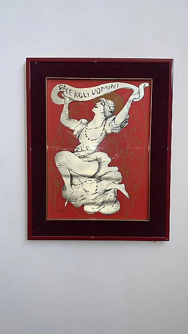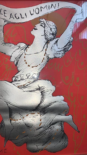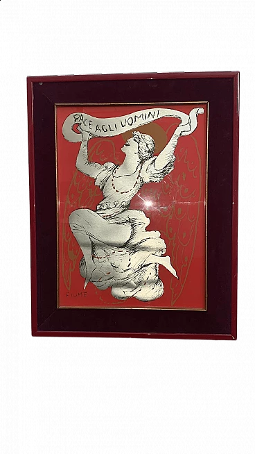 Litografia su foglio metallico Pace agli Uomini di Salvatore Fiume, anni '60