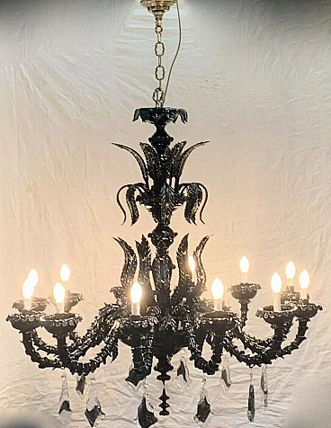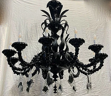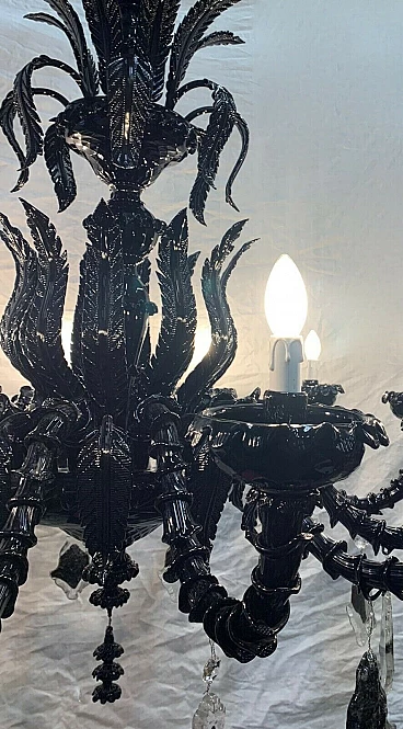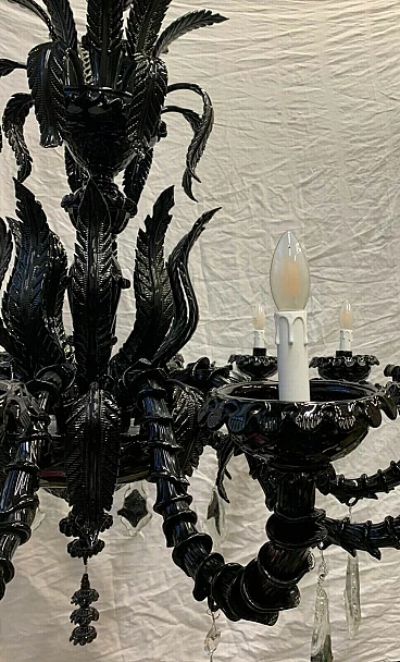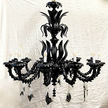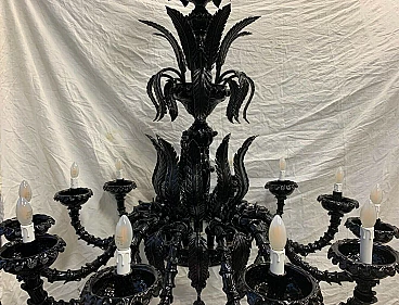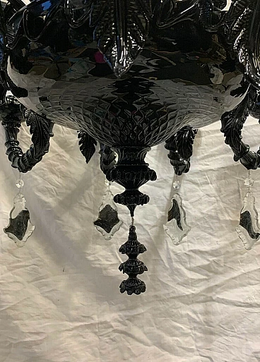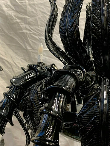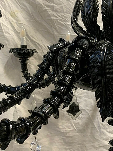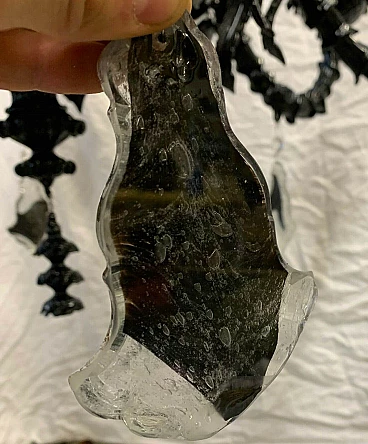 Lampadario in vetro soffiato nero di Seguso, anni '70