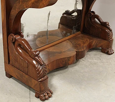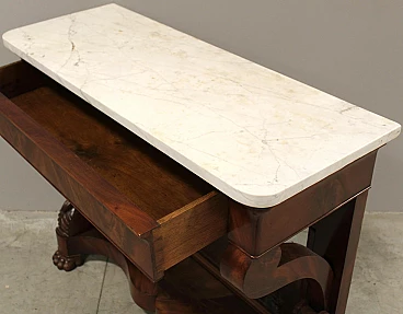 Console Carlo X in mogano con piano in marmo bianco di Carrara e specchio, '800