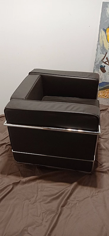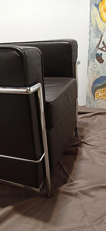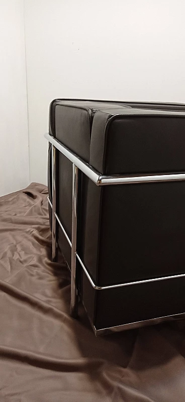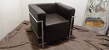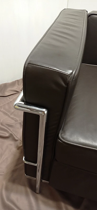 Poltrona LC2 in pelle Testa di Moro di Le Corbusier, Jeanneret e Perriand per Alivar