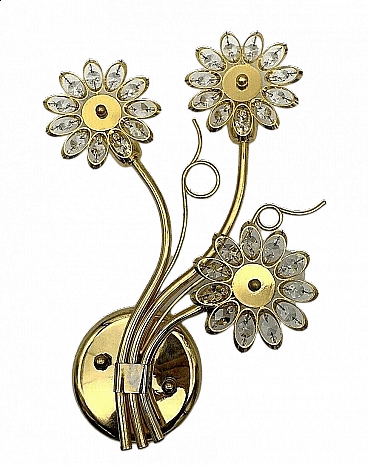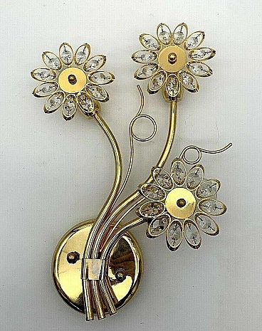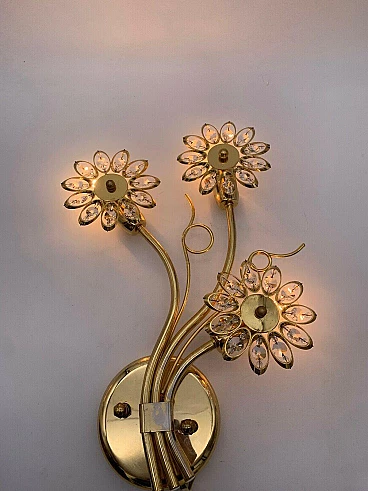 Coppia di applique in ferro dorato e cristallo di Swarovski, anni '80