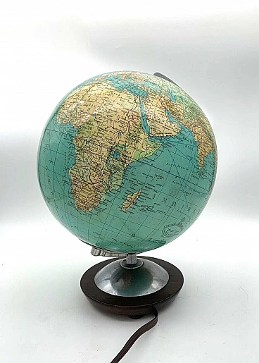 Lampada da tavolo a mappamondo in legno e vetro soffiato di Columbus duo erdglobus, anni '80