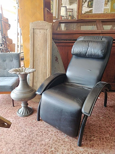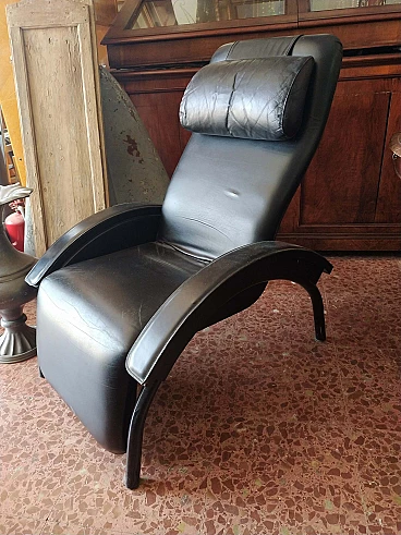 Chaise longue Sogno reclinabile in similpelle nera di Giovanardi, anni '80