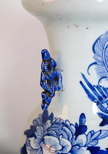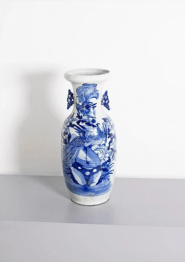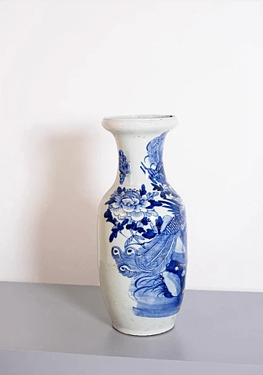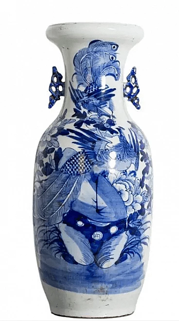 Vaso cinese in porcellana bianco e blu, '800