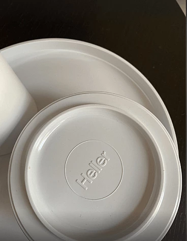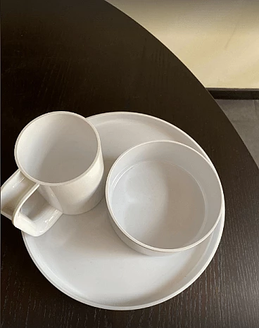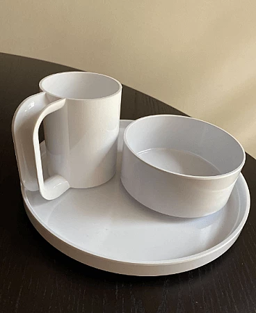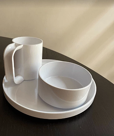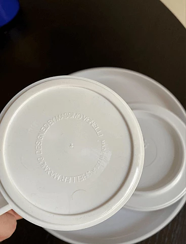 Stoviglie impilabili in plastica bianca di Massimo Vignelli per Heller.