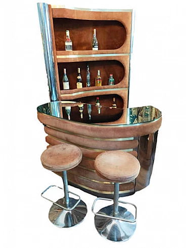 Mobile bar rivestito in alcantara con frigorifero, anni '70