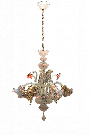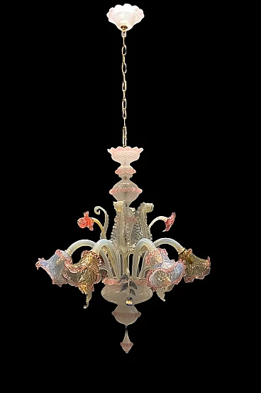 Lampadario decorato con fiori in vetro di Murano, anni '60
