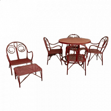 Salottino da giardino di 7 elementi in ferro tubolare rosso, anni '50