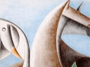 Matita su cartoncino Compenetrazioni Animali di Erto Zampoli, anni '50