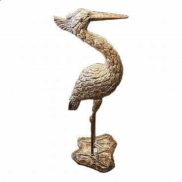 Scultura in legno intagliato a mano e dipinto argentato a forma di uccello, realizzata in Italia agli inizi del '900.